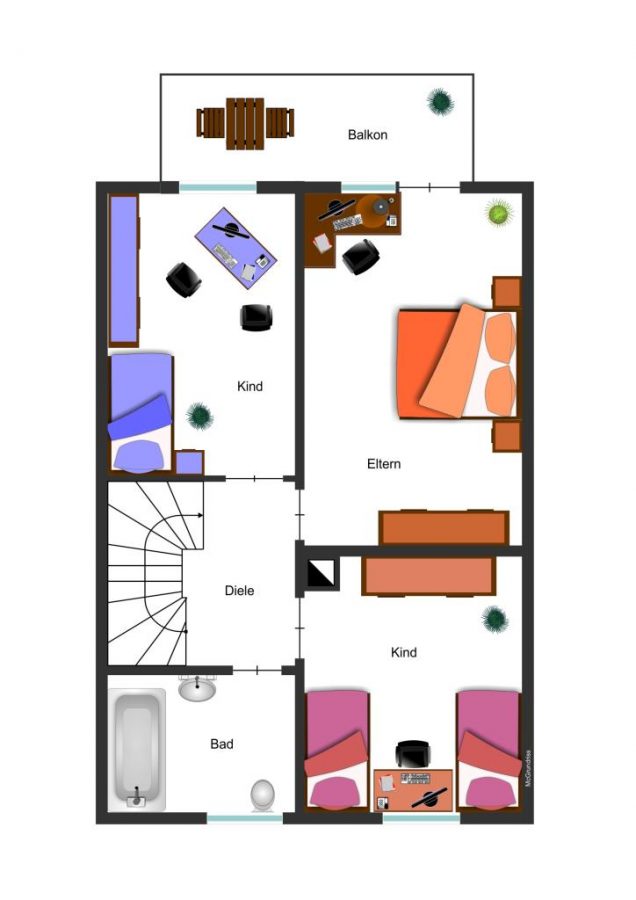 Zusätzlich: Ausgebautes Zimmer im Dachgeschoss (nicht in der Wohnfläche enthalten)