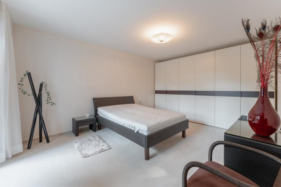 Das Wohnzimmer sowie das Elternschlafzimmer verfügen jeweils über einen direkten Zugang zum Balkon mit Blick ins Grüne. Zwei helle Kinderzimmer bieten ausreichend Platz für die Familie.