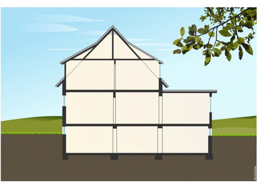 Das ursprüngliche Gebäude aus dem Jahr 1952 wurde 1972 um einen Anbau erweitert und verfügt über ein solides Untergeschoss, eine Erdgeschosswohnung mit Balkon und eine Dachgeschosswohnung mit großer Dachterrasse. Der gepflegte Garten mit einem Gartenhaus lädt zum Entspannen ein und bietet Raum für individuelle Gestaltungsmöglichkeiten.