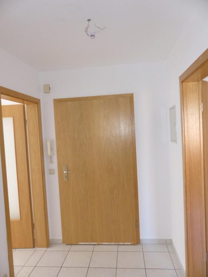 Wohnzimmer, Flur, Bad und Küche sind durchgehend mit Fliesen und Raufasertapete ausgestattet. Eine gepflegte Einbauküche ist bereits vorhanden. Das Schlafzimmer ist mit Laminat ausgelegt und ebenfalls mit Raufaser tapeziert. Balkonzugang im Wohnbereich. Tageslichtbad mit WC, Handwaschbecken und Badewanne. Im Untergeschoss des Hauses befinden sich Waschküche und ein separater Kellerraum. Des Weiteren gehört ein PKW-Freistellplatz zur Wohnung.